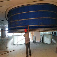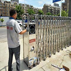 简单介绍电动卷帘门 一、电动卷帘门的定义 电动卷帘门是以多关节活动的门片串联在一起,起动由电动机组带动,卷帘门在固定的滑道内,以门上方卷轴为中心转动上下的门。适用于商业门面、车库、商场、医院、厂矿企业等公共场所或住宅。尤其是门洞较大,不便安装地面门体的地方起到方便、快捷开启作用。如用于车库门、商场防火卷帘门飞机库门。 二、电动卷帘门的工作方式电机隐藏于卷管内,通过电机转动带动传动轴